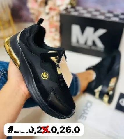 Tenis mk theo negros con doradosTenis mk theo negros con dorados para mujer